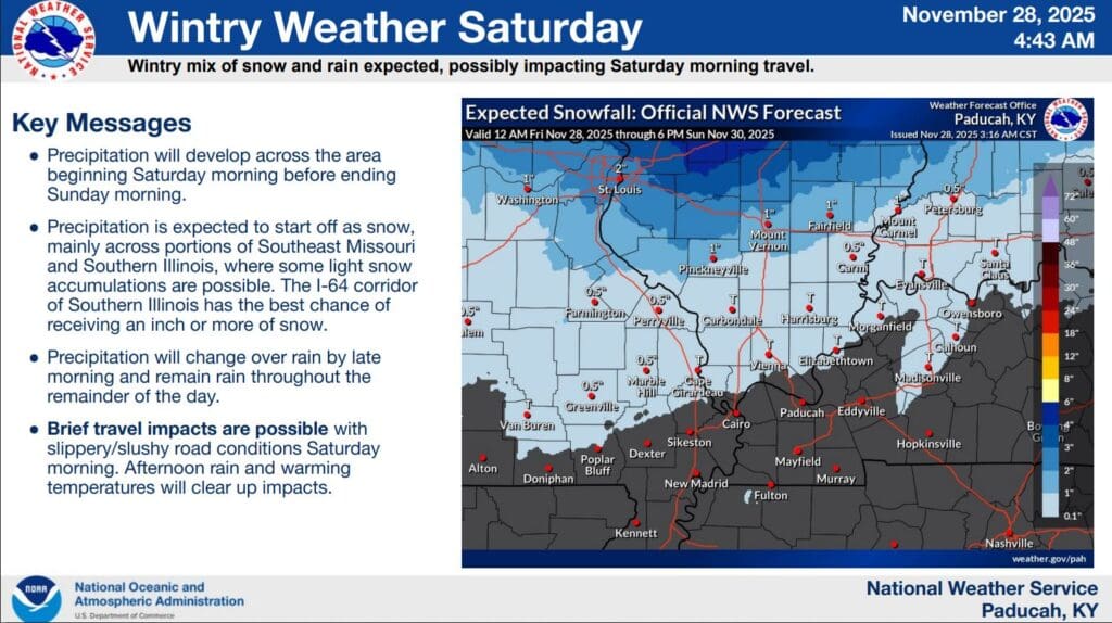 Snow chances look slight for western Kentucky this weekend, mostly rain expected