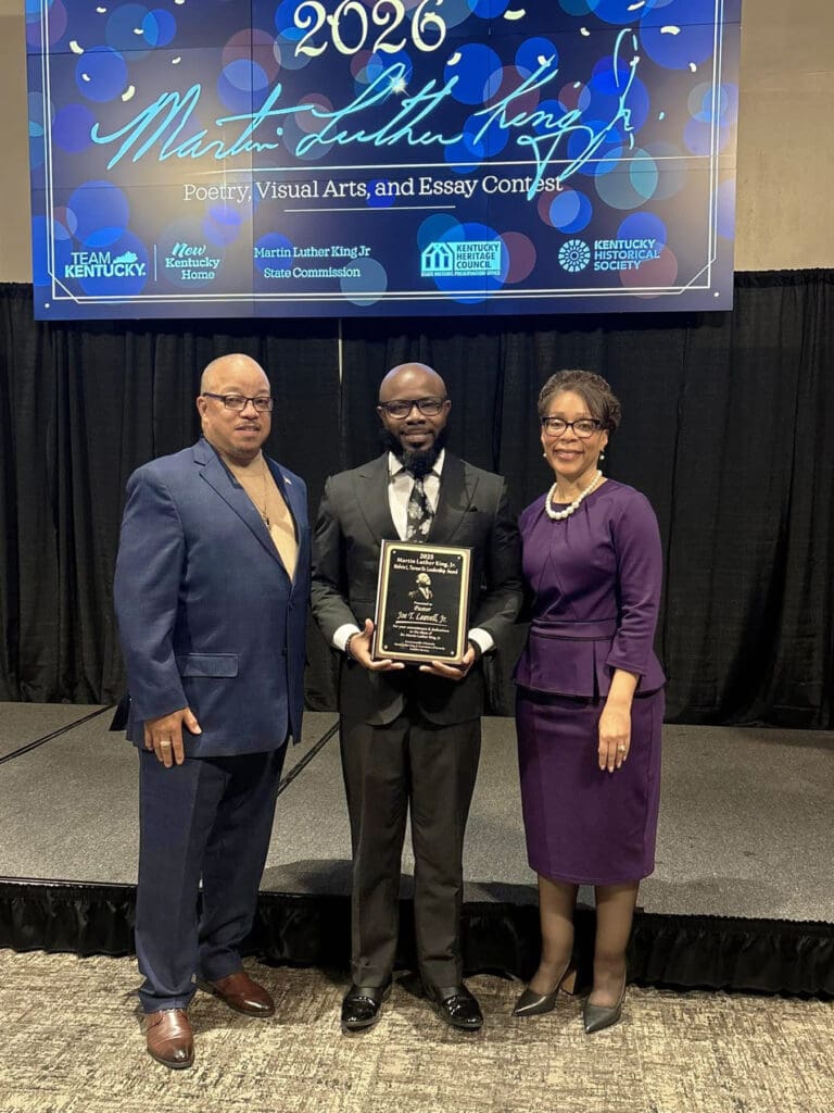 Joe Leavell receives the Melvin Turner Leadership Award from Dr. MLK Jr. Commission of Kentucky