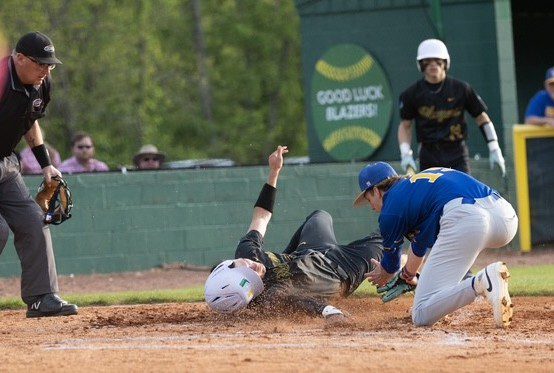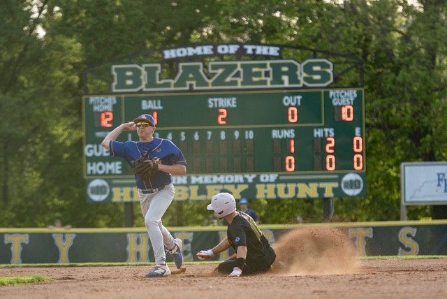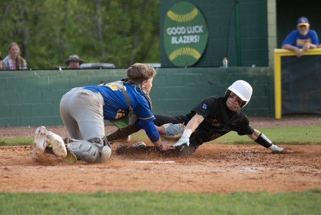The Blazers pushed their lead to 3-1 in the bottom of the third. Hunt singled and stole two bases and AJ Hogart also singled and stole a base. Courtland Gibson drove in a run with a single and another run scored on a throwing error.