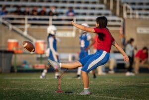 Colonels’ junior kicker Jayleigh Campbell also is a member of the Colonels Marching Band that will perform before the game.