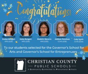 The Christian County Public School System spotlighted students selected to attend the Governor’s School for the Arts (GSA) and the Governor’s School for Entrepreneurs (GSE) over the summer.