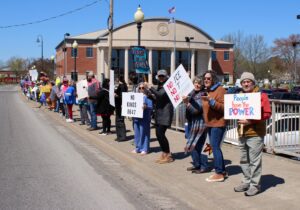 As the United States approaches its 250th birthday, citizens across the nation organized protests on Saturday denouncing the actions of President Donald Trump and his administration, and protestors gathered in Hopkinsville to make their voices heard.