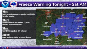 The National Weather Service in Paducah is putting out a Freeze Warning for late Friday night into Saturday morning, which means sensitive vegetation is in jeopardy.