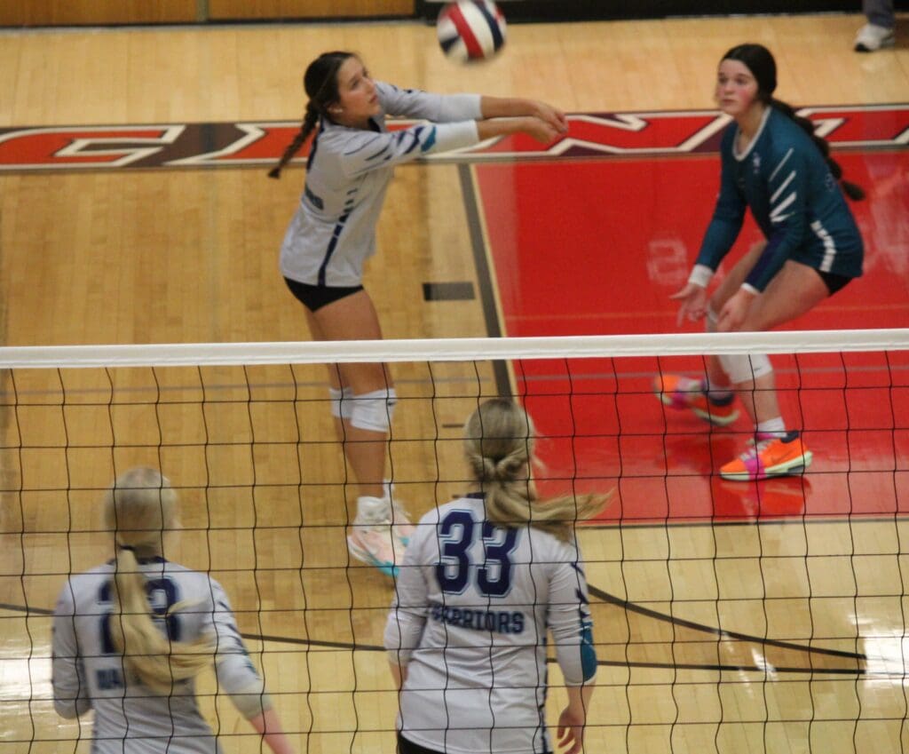 The Lady Warriors won the first two sets, 25-20 and 25-9, before suffering a 25-18 setback in the third set. The Lady Tigers led the fourth set 19-18 before the Lady Warriors won seven of the next nine points to secure the match, 25-21.