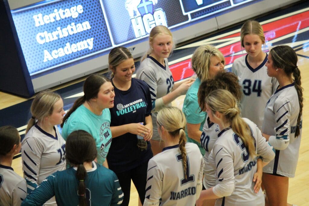 Heritage Christian Academy survived a tension-filled comeback attempt by Caldwell County and advanced to the Region 2 Volleyball Tournament semifinals with a 3-1 victory Tuesday night at Hopkins County Central High School.
