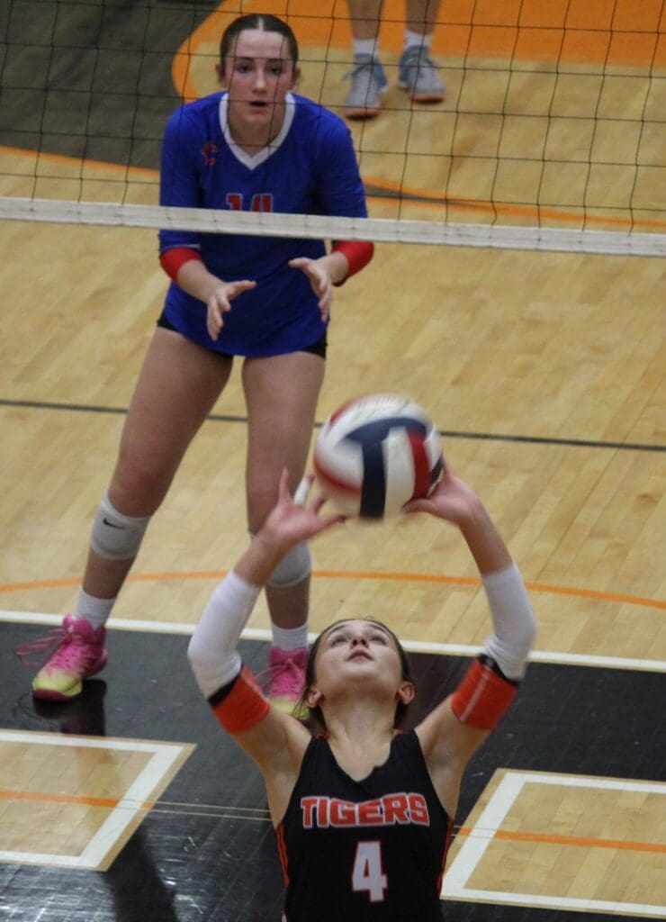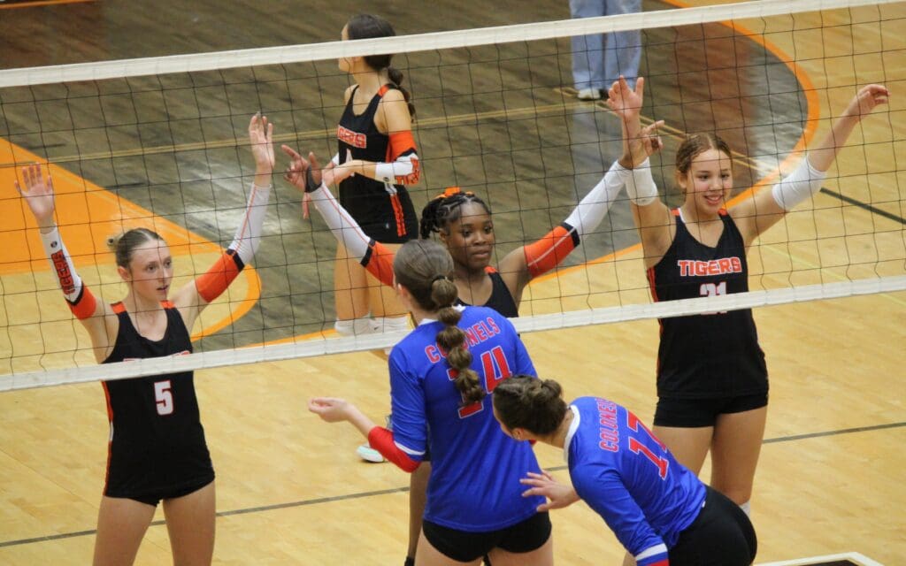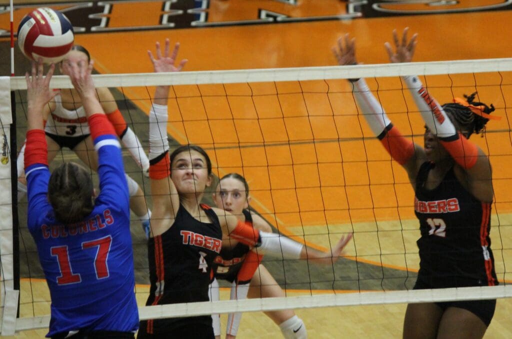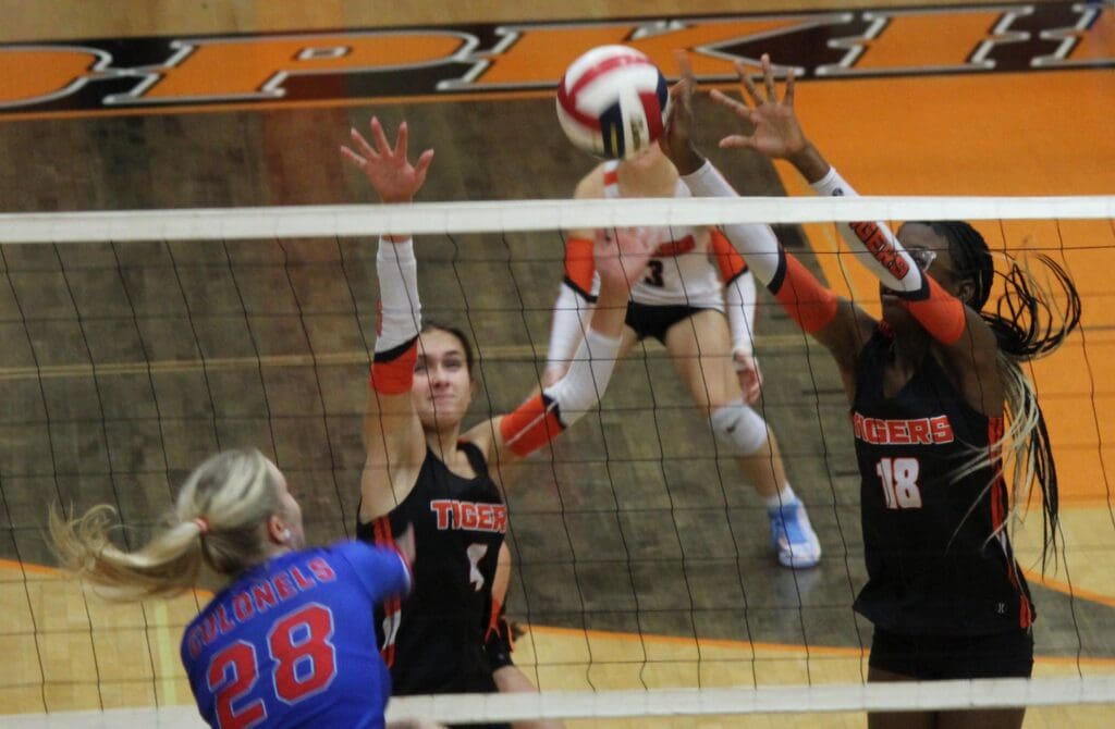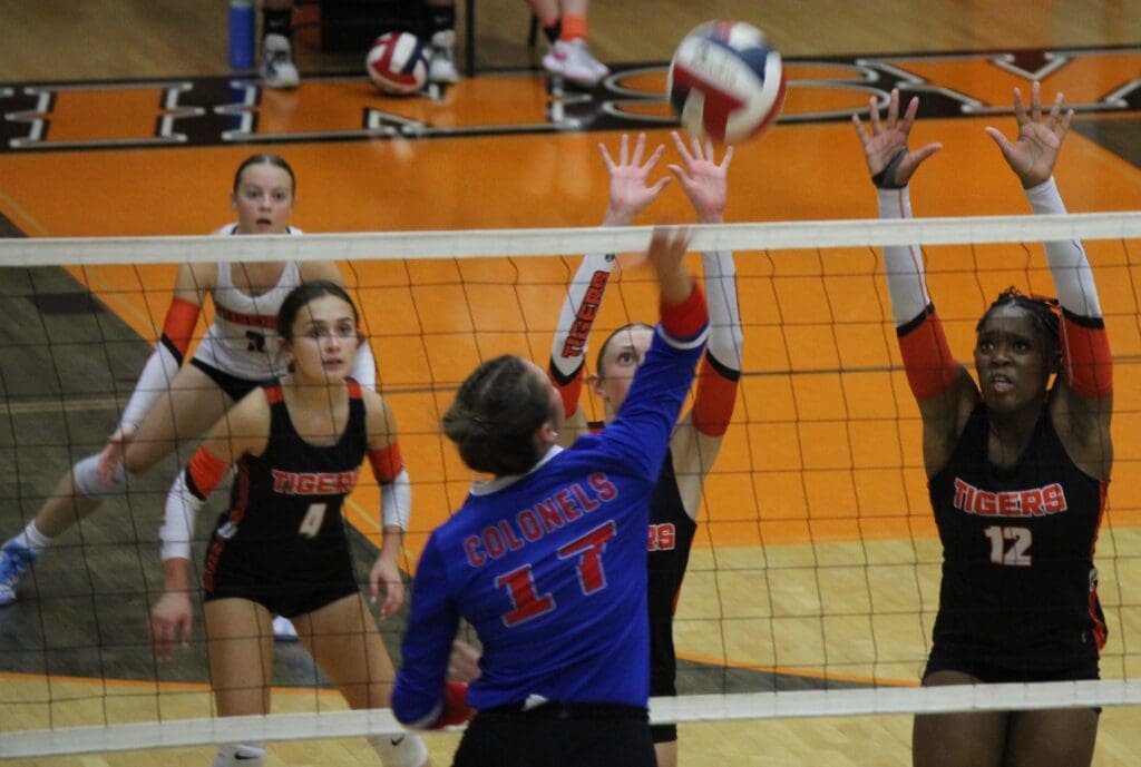 The Christian County Lady Colonels and Hopkinsville Lady Tigers met for the first time on the District 8 volleyball court this season Thursday night in Tiger Gym.