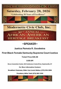 As Black History Month comes to a close, the Modernette Civic Club of Hopkinsville is inviting the community to its 30th annual African American Heritage Breakfast this weekend.