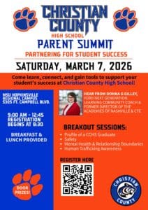 Christian County Public Schools is hosting our Parent Summit: Partnering for Student Success on Saturday, March 7 from 9:00 AM–12:45 PM at the Murray State University Hopkinsville Regional Campus. ![]()