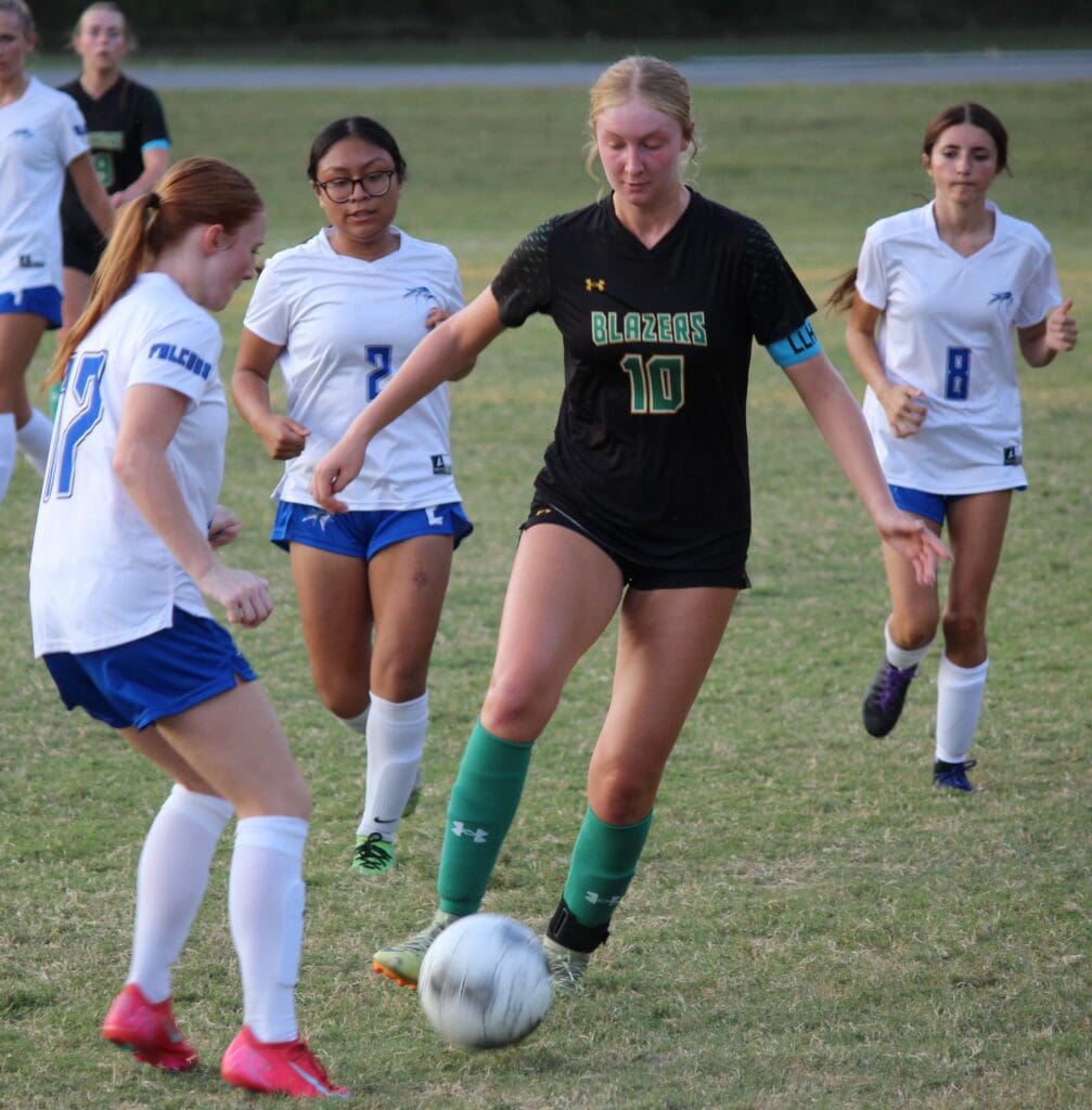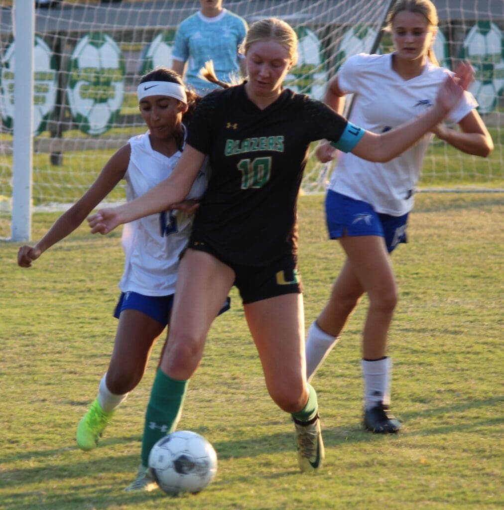 Kendall Hancock had four goals. Skylar Cantrell, Cecilia Langhi, Gracie Ausenbaugh, and Palin Hampton also had goals for the Lady Blazers, who have won three straight matches.
