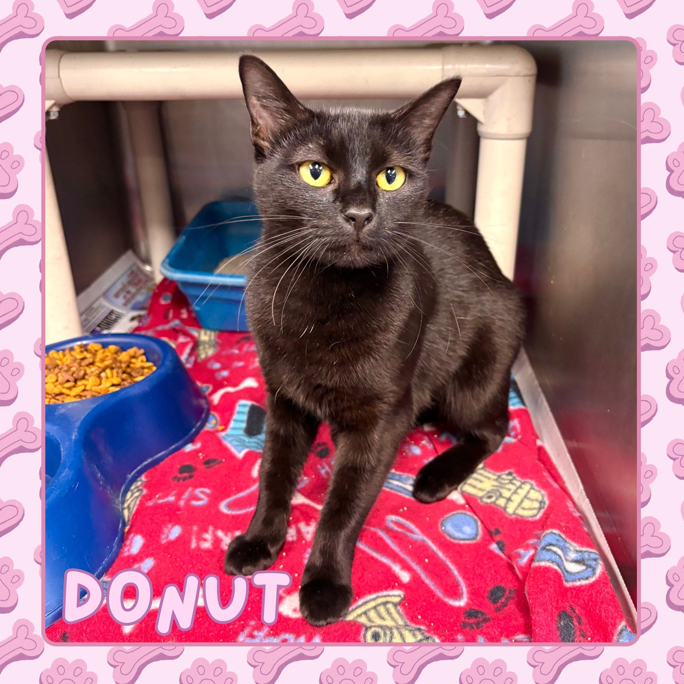 Donut is a sweet 1-year-old domestic short-haired cat who has been a shelter resident for over four months. Donut was found as a stray and is now looking for a loving forever home.