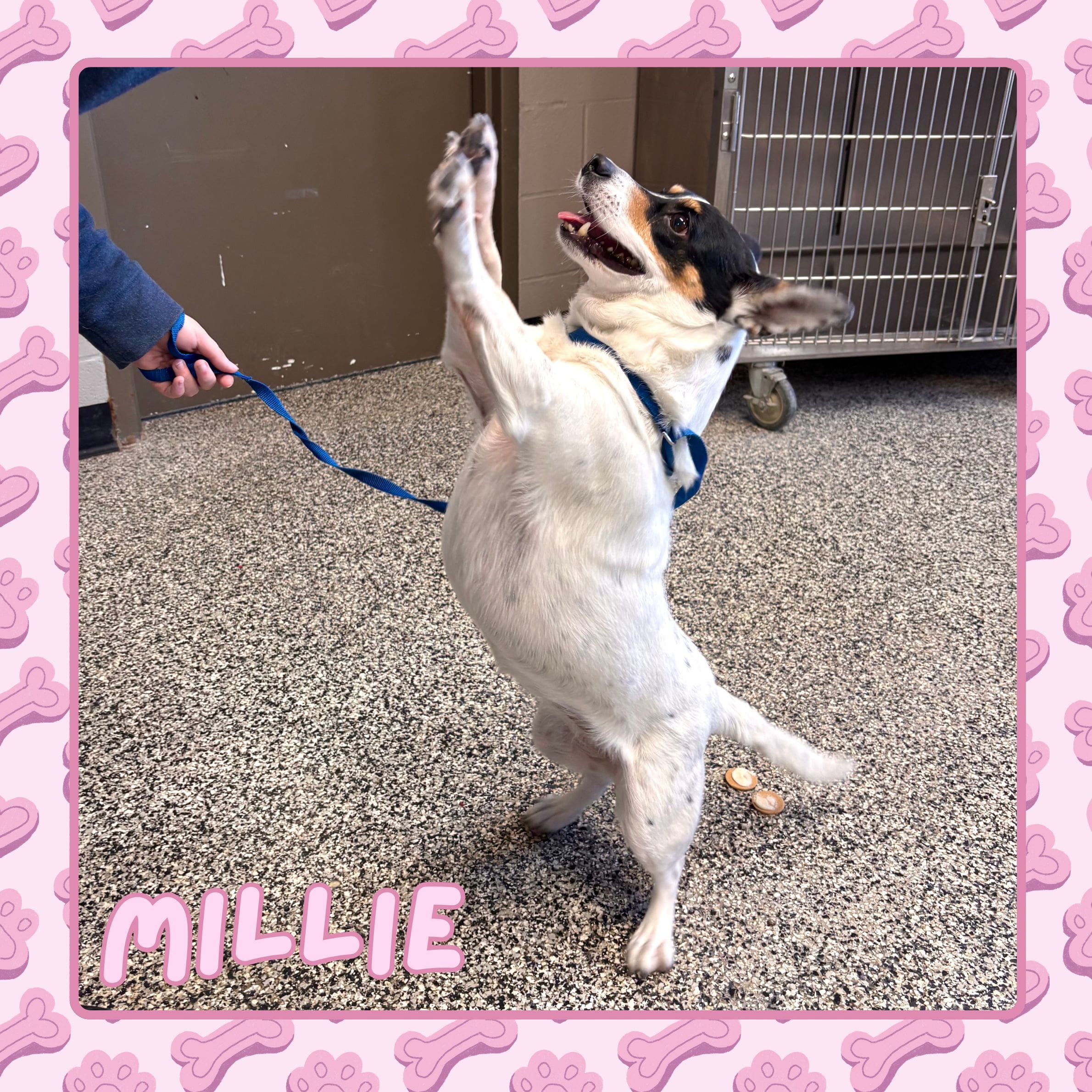 Millie is a playful 7-year-old Jack Russell Terrier and Corgi mix looking for her forever home. Millie is a friendly girl with lots of love to give, but in the past, she has been uncomfortable around men and would do best in an all-female home.