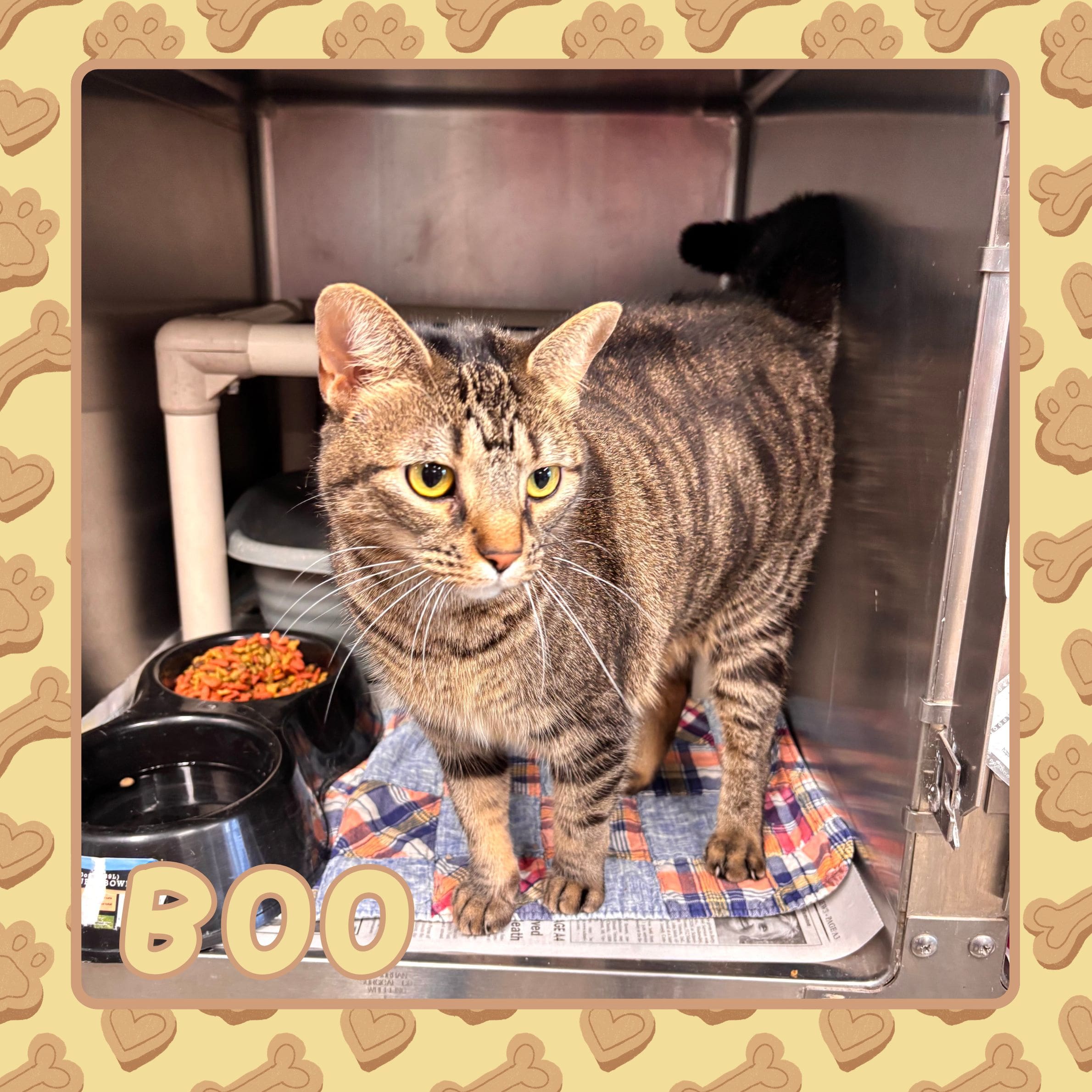 Boo is a sweet and gentle two-year-old domestic short-haired tabby who has been a shelter resident for over a month after being owner-released. Now, Boo is looking for a family that will show her love and enjoy her cuddles.