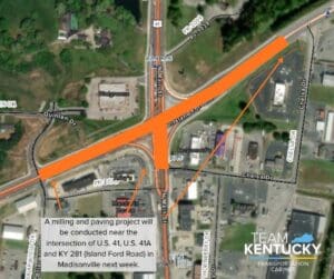 Milling and paving work is set to take place in Madisonville next week at the intersection of U.S. 41 and KY 281.
