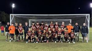 The Blazers tied the game 1-1 with 36:35 to go in the game when keeper Hayden Fitzsimmons sent a long pass over the defense. Hayden Hunt sent a lazer toward Hoptown goalie Raul Rivera who knocked down the pass. In the scrum around the loose ball, Rivera tried to clear it out but the ball bounced off a Tiger player’s leg and into the goal.