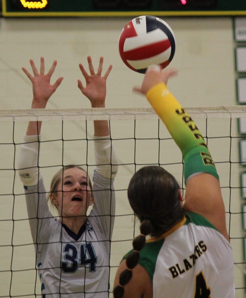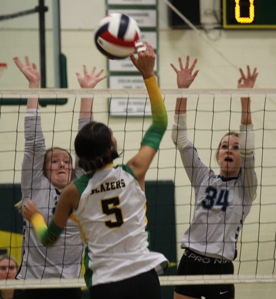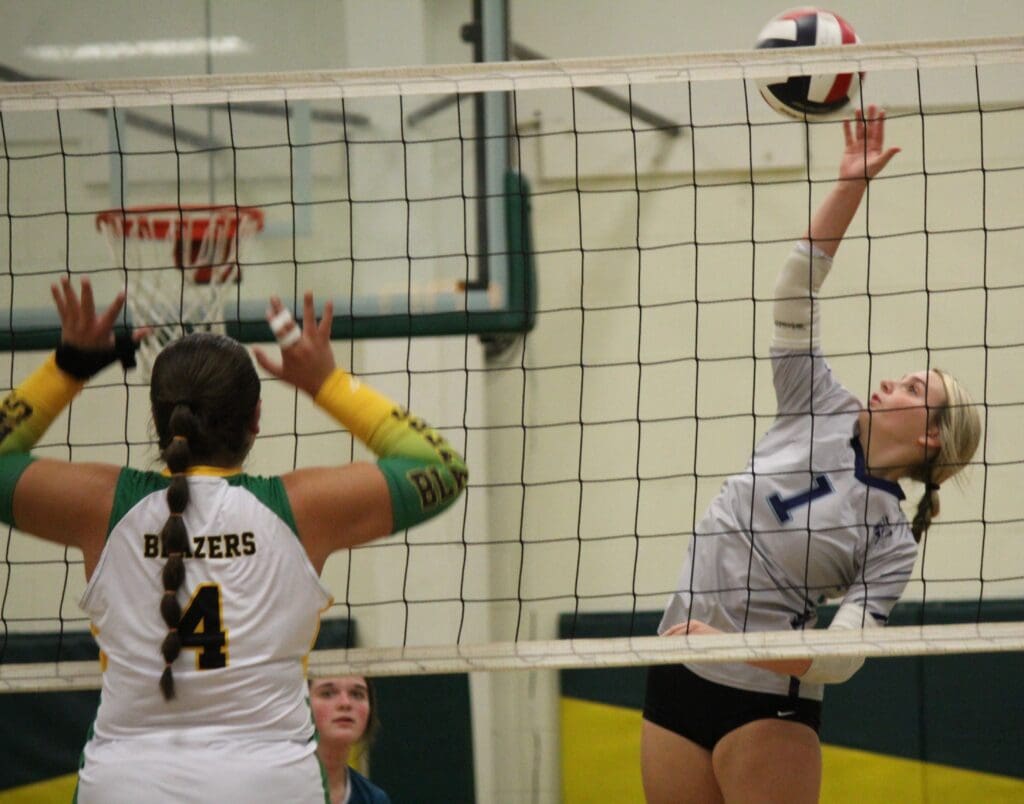 Gretchan Durham stuffed the stat box with two blocks, 11 digs, and 32 assists. Cassidy Keller finished with 23 digs.