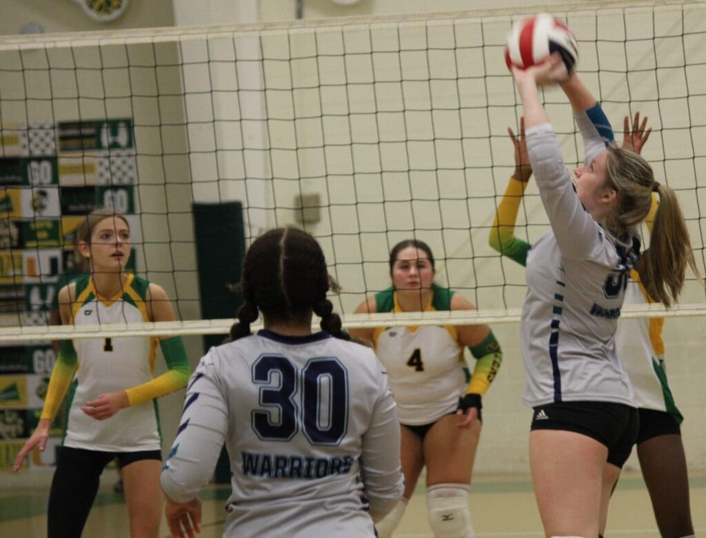 Eighth grader Kaydence Knight entered to start the fourth set and picked up two aces and helped the Lady Warriors take a 4-0 lead and set the tone for the HCA to cruise to a 25-21 win in the fourth set.